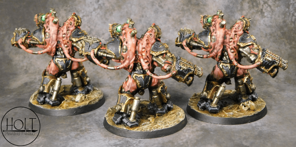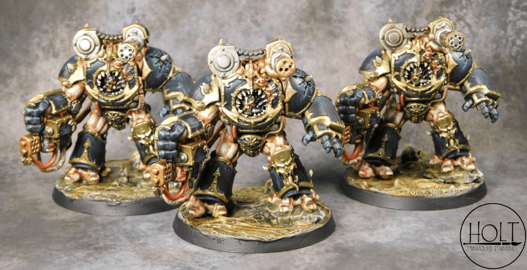 Games Workshop Warhammer 40,000 Daemonkin Chaos Space Marines Black Legion Obliterators equipped with fleshmetal guns and crushing fists.