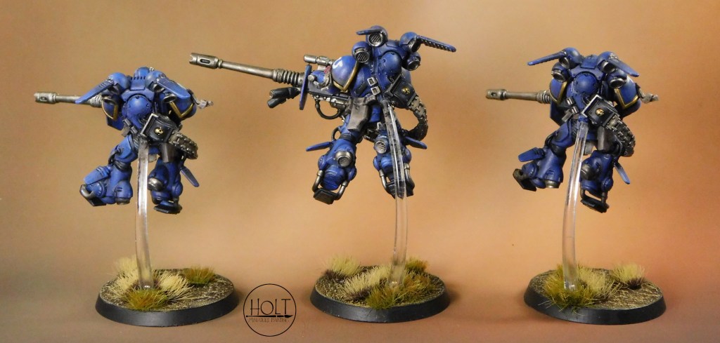 Vanguard Space Marine Suppressors from the Ultramarine Chapter for the game Warhammer 40,000 by Games Workshop.