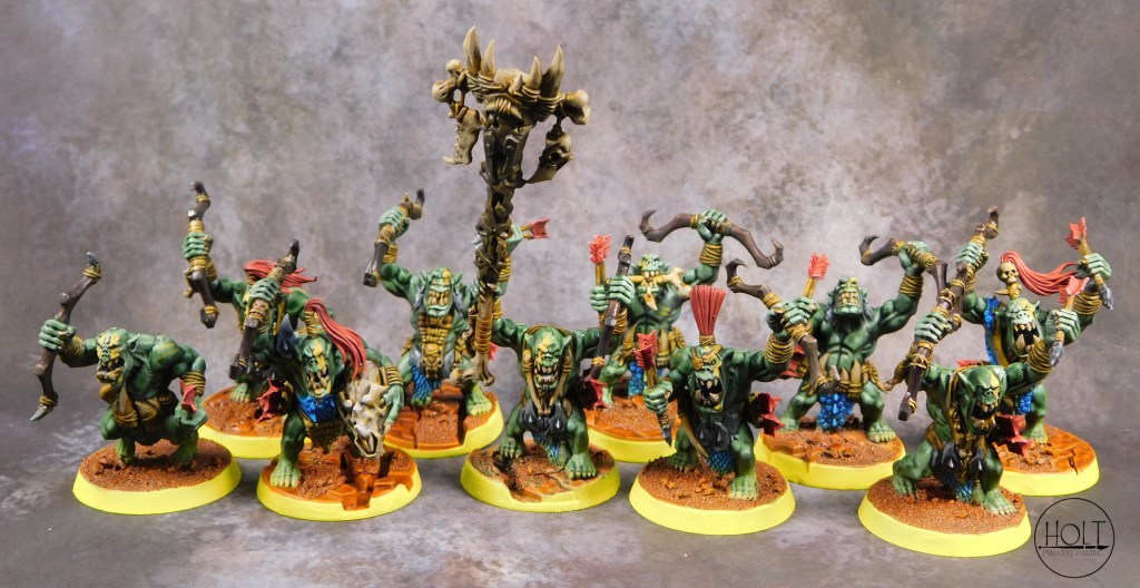 Games Workshop Warhammer Age of Sigmar Orruk Warclans: Savage Orruk Army painted on commission at a Tier 1.5 level.