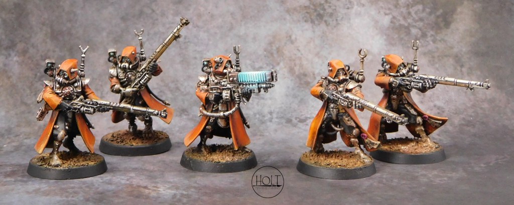 Games Workshop Warhammer 40,000 Adeptus Mechanicus Skitarii Rangers painted on commission in the Ryza paint scheme at a Tier 2 Level.