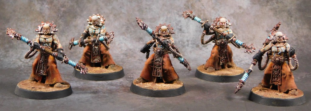 Games Workshop Warhammer 40,000 Adeptus Mechanicus Fulgurite Electro-Priests painted on commission in the Ryza paint scheme at a Tier 2 Level.