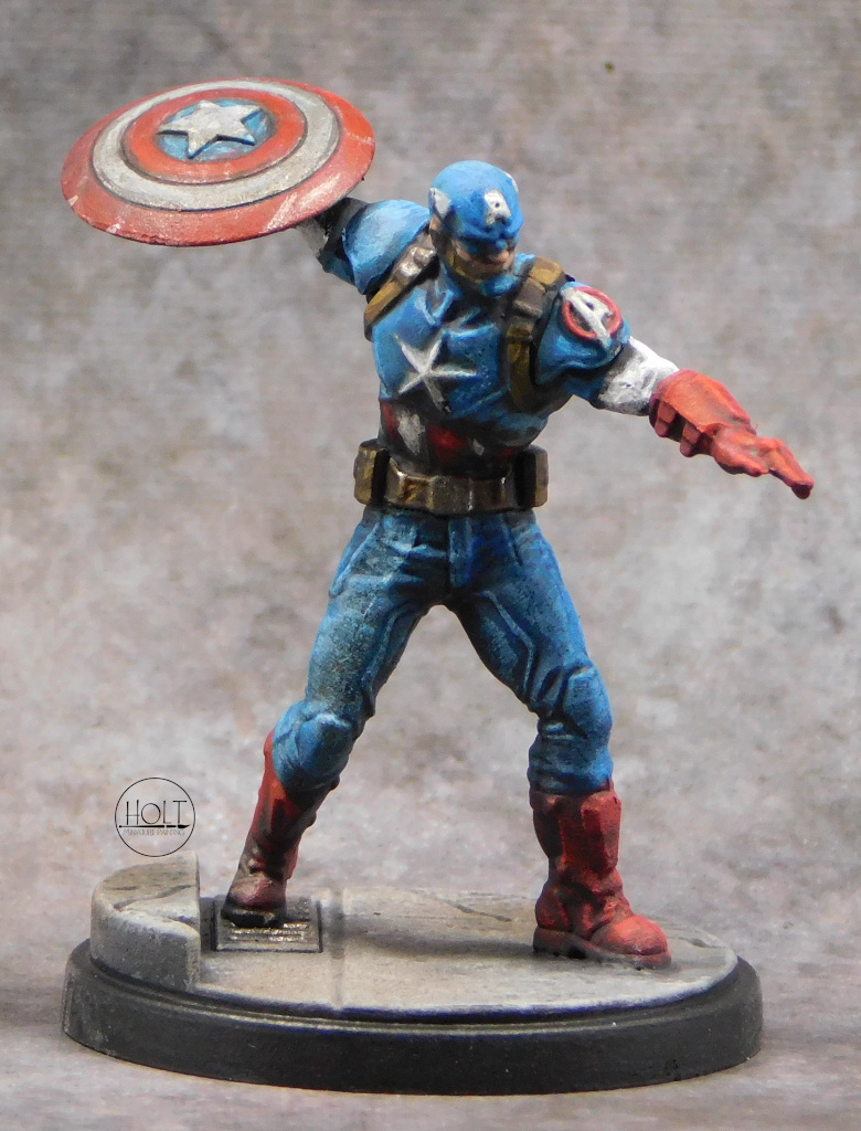 Captain America for the game Marvel: Crisis Protocol by Atomic Mass Games painted on commission at a Tier 2 level.