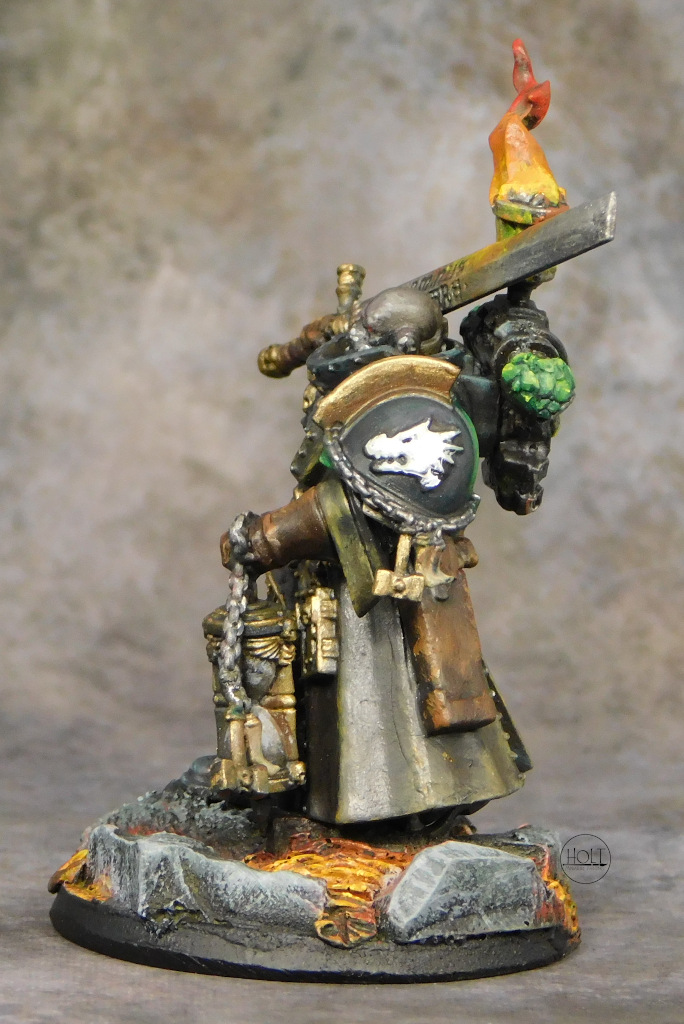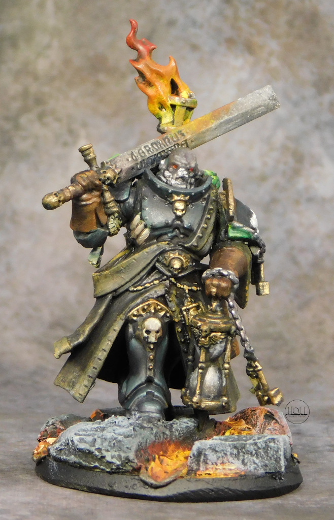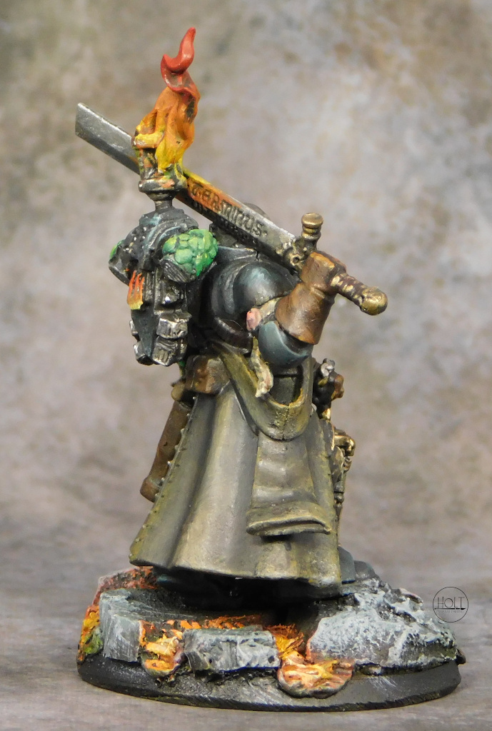 Games Workshop Warhammer 40,000 Space Marine Judicator painted in the Salamander chapter. Painted on commission with Oils and Acrylics.