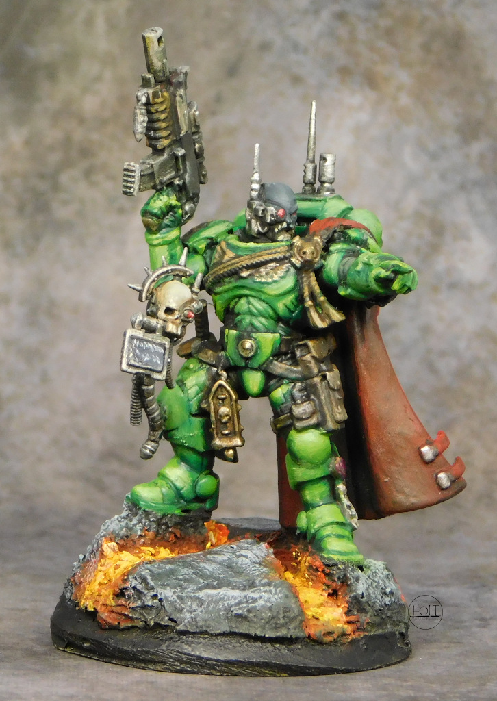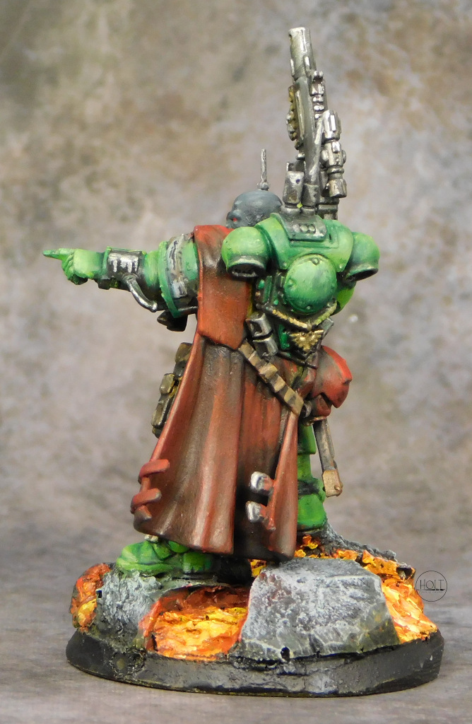 Games Workshop Warhammer 40,000 Space Marine Captain in Phobos Armour painted in the Salamander chapter. Painted on commission with Oils and Acrylics.