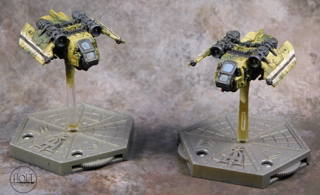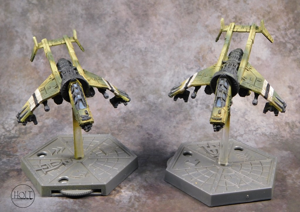 Games Workshop Aeronautica Imperialis T’au Air Caste Fighters painted on commission at a Tier 1 level.