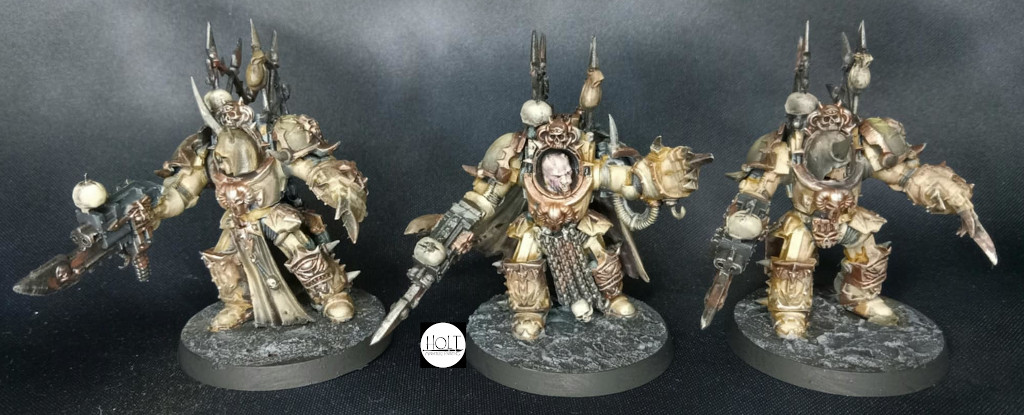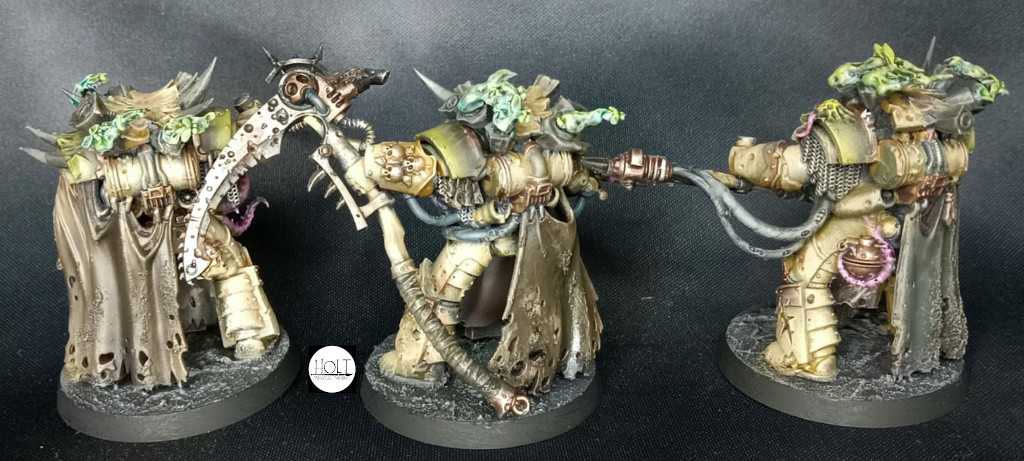 Warhammer 40,000 Death Guard reinforcements for an ongoing army project. Painted on commission in the alternate Pale Bone Armor with oils.