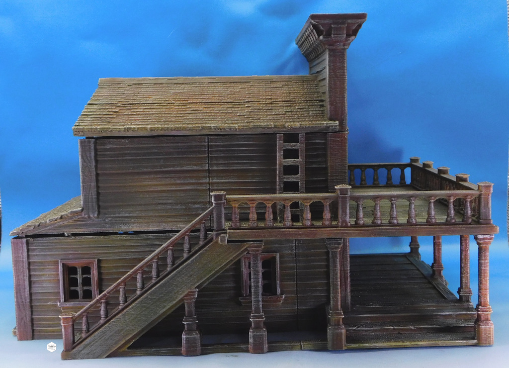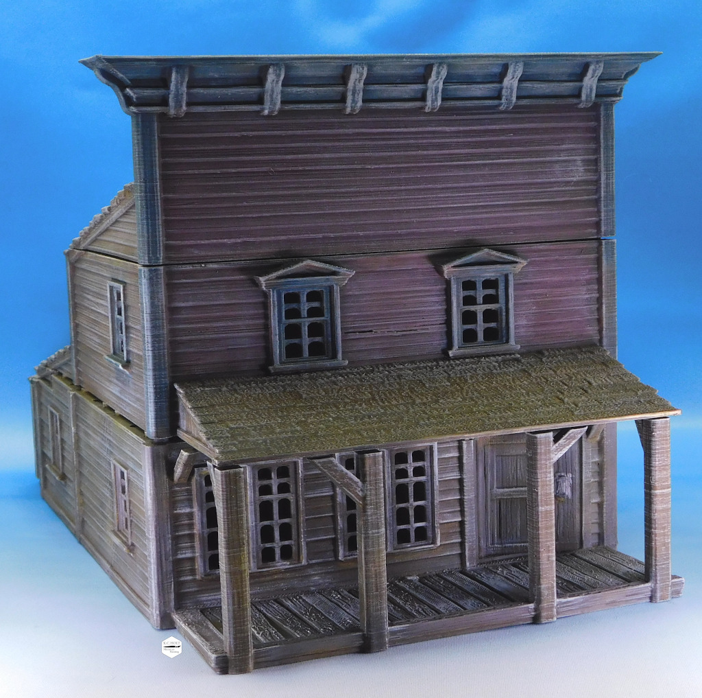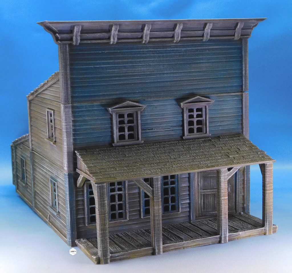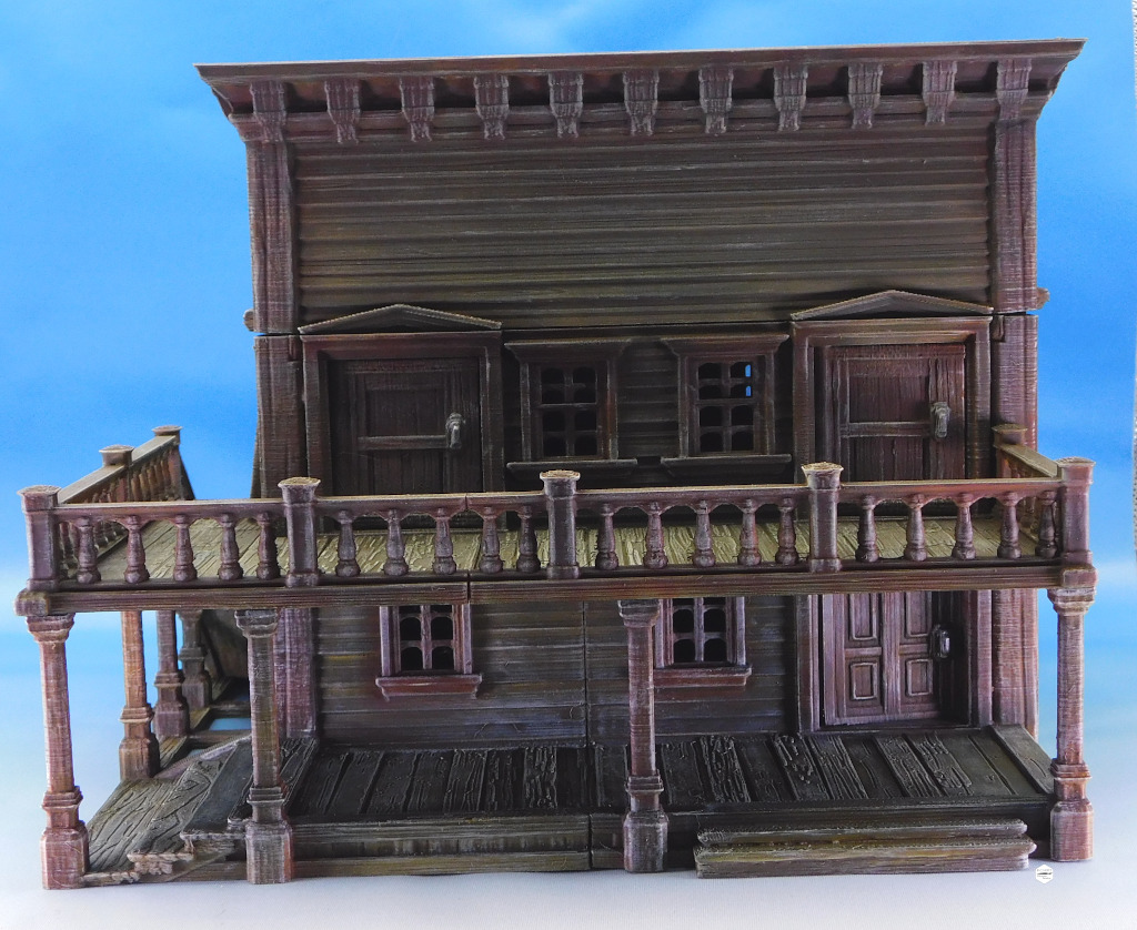 Old West Buildings 3D designs from pratheron and painted on commission for a client’s gaming table.
